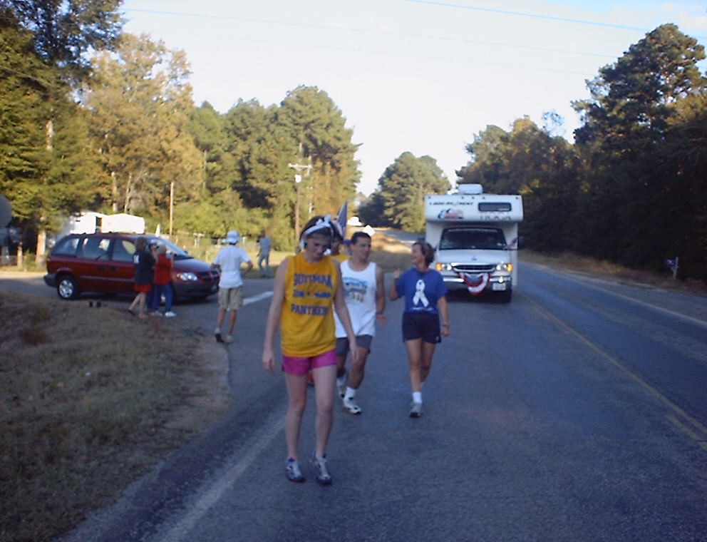After eight miles from Lost Gap Junction to Chunky MS. Tired, sweaty but feeling good. Now the girls have to go to basketball practice. |