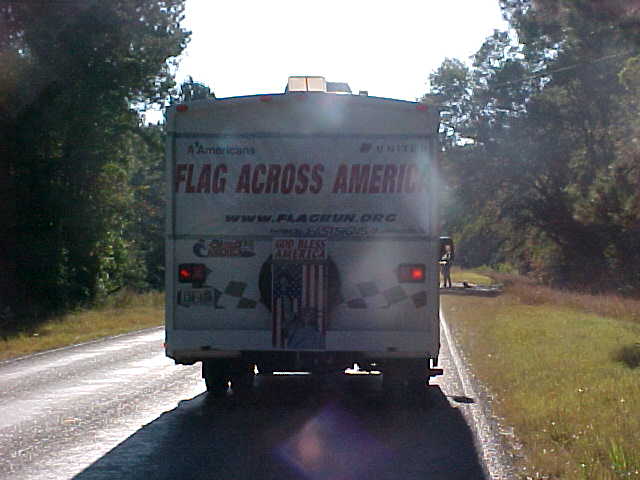 Back of Camper that follows runners. Cruise America donated the RV for mobile command center. |